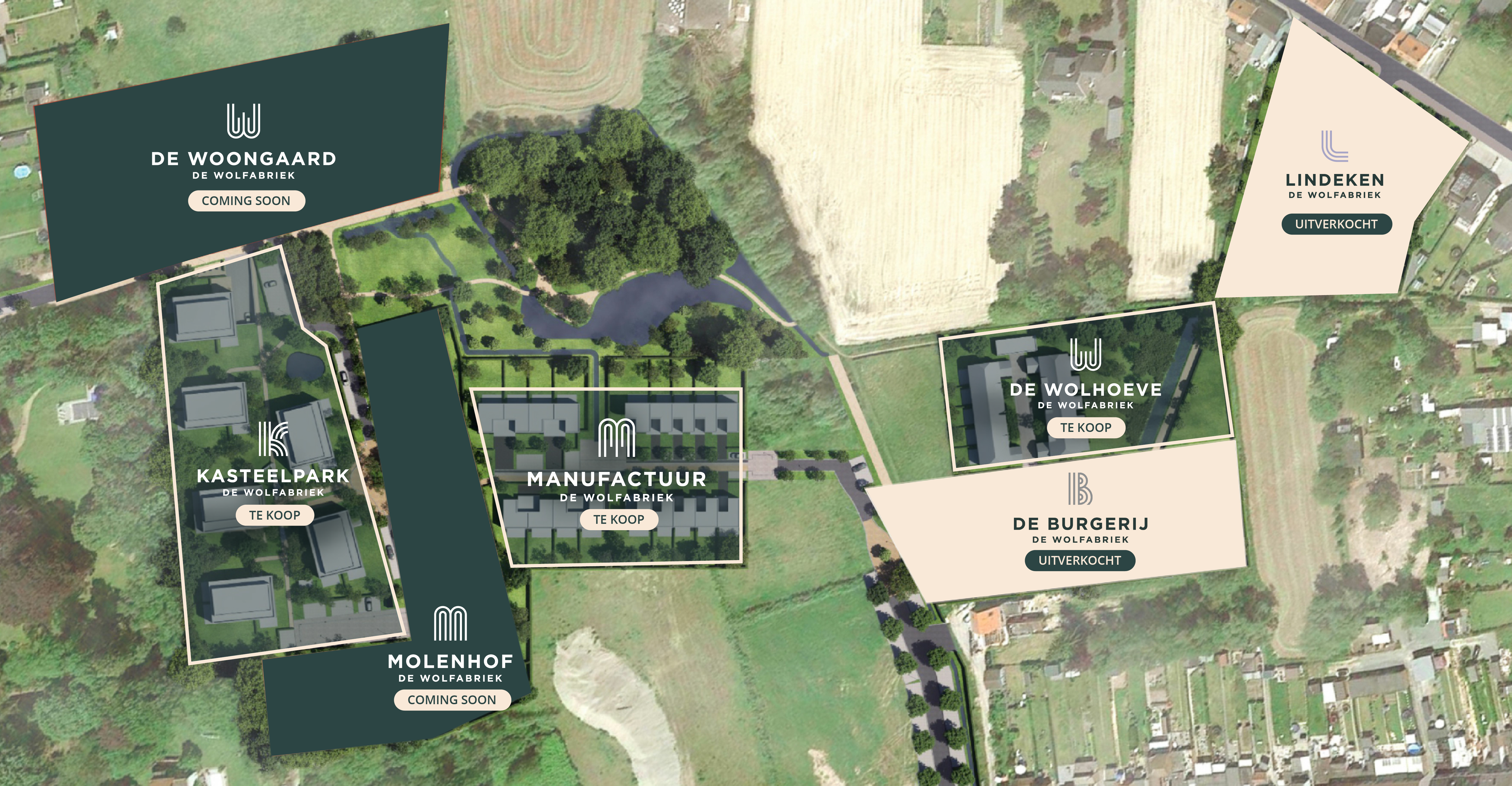 Dit alles wordt gerealiseerd in 8 verschillende fasen onder de overkoepelende naam De Wolfabriek.